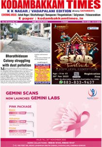 Kodambakkam TimesAshok Mansion, 21/6, First Floor, Mambalam Station Road, West Mambalam, Chennai - 600 033.