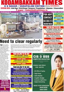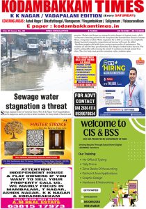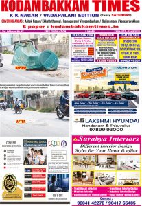 Kodambakkam TimesAshok Mansion, 21/6, First Floor, Mambalam Station Road, West Mambalam, Chennai - 600 033.
